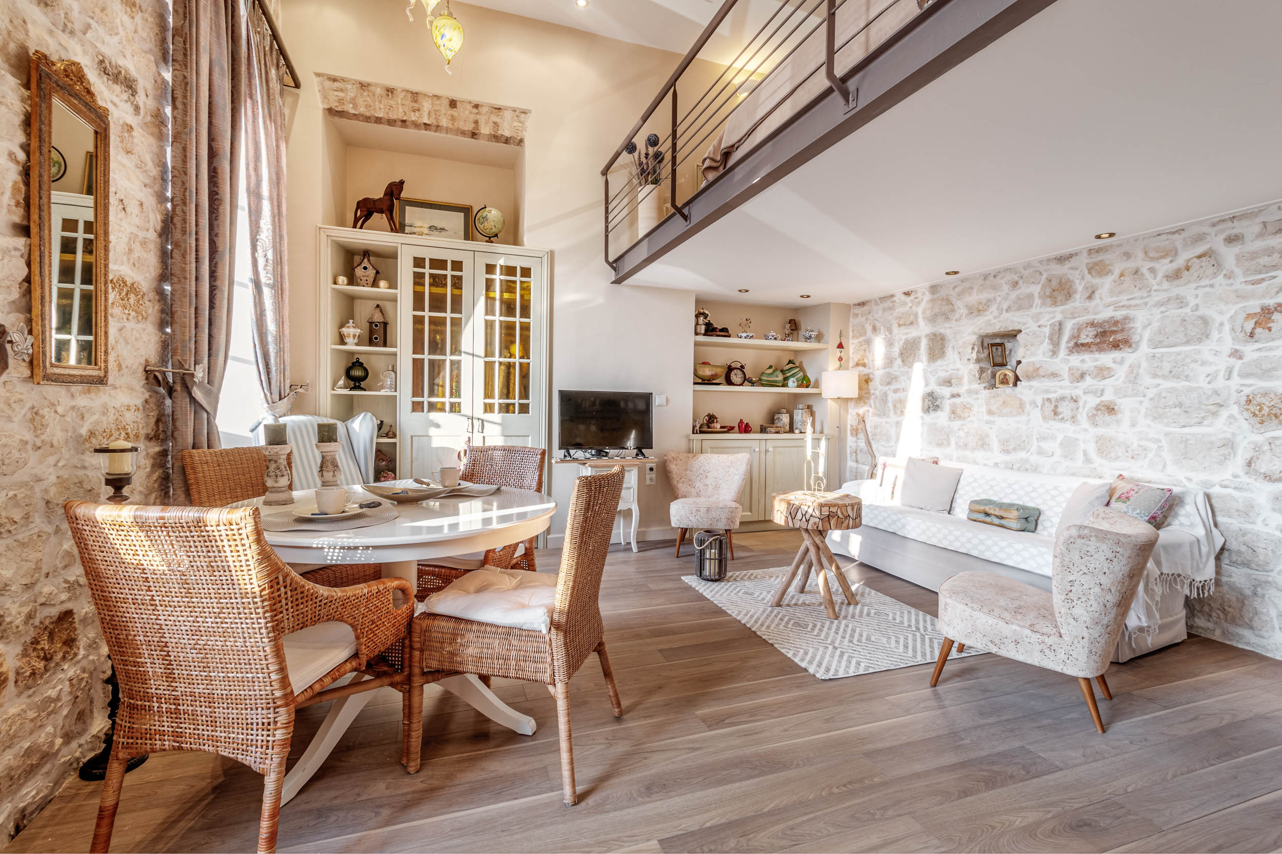 Open the curtains in this charming loft style apartment and let the light and mesmerizing Ionian Sea views flood in. Our Luxurious loft apartment has everything you need to enjoy your stay in Corfu town and is conveniently located within walking distance to all of Corfu town’s main cultural attractions, restaurants, and local artisan shops.