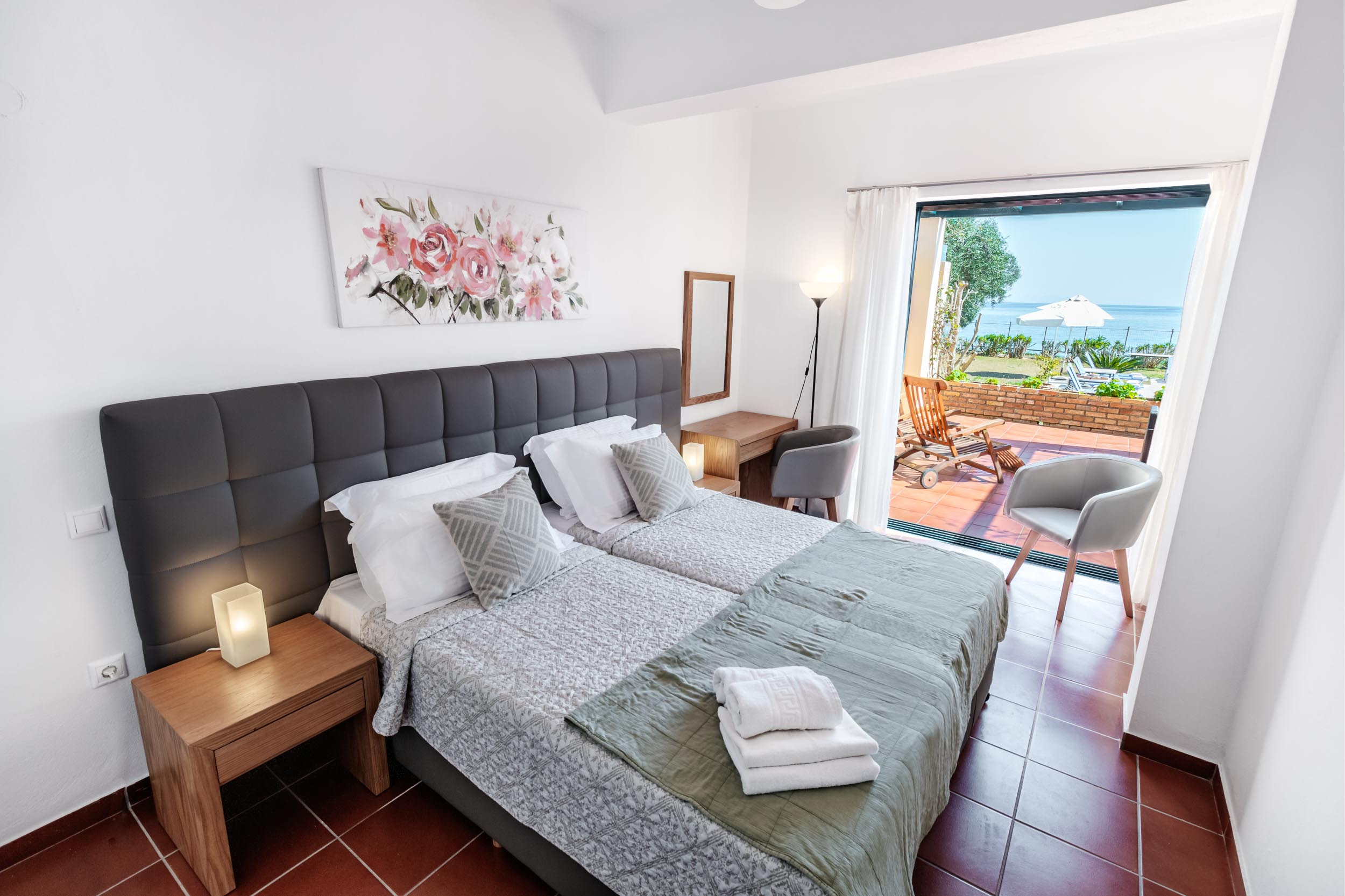 • Direct access to one of Corfu’s most beautiful pebble beaches
